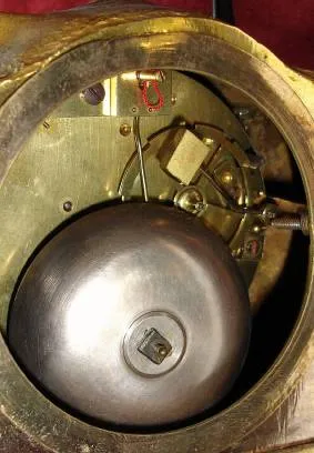 Condition: the bell standard got pushed against the movement during shipment, and you'll need to straighten it before installing the pendulum. The case itself is in excellent original condition, with bright gilding, and Fred's horse in "black" bronze finish. Frederick the First [the father] was born in Konigsberg and served as the soldier king of Prussia after 1650. His son became Frederick the Great. Height 17 inches