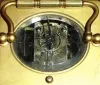 Condition: running and striking with original platform intact. Case retains original gilding, with some nicotine fogged over (don't rub to clean). Left beveled glass has a chip top corner, balance of glass is good. Porcelain dial is nice and with original retailer [as in headline] showing below 6. Height 6.5 inches