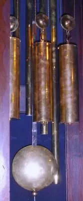 C.1910, European [English or German], 3-Tr, 5-Tube, quarter chime, Westminster tune, tall clock, in a walnut case with removable hood.