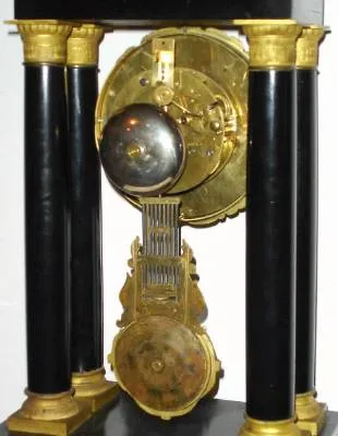 C.1860, French, 4-column Empire style mantel clock with original dome and base.