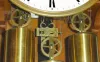 C.1850, Austrian, Martin Boch, Wien, a good 3-wt Grand Sonnerie wall clock, 72 beat. Condition: this exceptional 3-wt hung behind the piano in Dana's music room (see detail image), and was reportedly his favorite "Vienna". Has a quality bench made movement with maintaining power, nice hand-finished beat-set, and quality 5 spoke pulleys. Dial grommets intact plus strike shutoff working; dial signature [Boch] restored by Dana. Minor shortcomings include missing "tail" for the minute hand, part of top finial base missing, corbels loose in case, sliver of seat board missing on each side. Everything there is original. Cleaned by Dana and hung in 1974. Height 55 inches