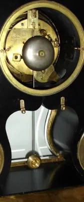 Condition: this clock has been restored and seems to be in good running order. Repairs include, chip filled in dial center, left dial grommet properly turned to replace missing one, and pendulum replaced (probably had a large compensating pendulum). The movement is signed "R and C, Paris and London", clean and running. Calendar indicates day, date, month and moon phase. Some edge roughness commensurate with the age of the piece. This is a very heavy clock, courier delivery suggested. Height 20.5 inches