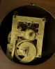 Waterbury Calendar No. 36 with printed paper over tin top and bottom dials with top having Roman on chapter ring, ticks marking outer minute ring wit...