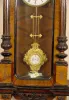 ca 1850, painted tin dial marked Forestville Manufacturing Co./Bristol, Ct. U.S.A. with domed chapter ring in Roman with outer minute ring marked with ticks, every 5 minutes bold, brass time-only spring driven movement stamped Forestville MFG/Bristol, Ct., interior printed paper label reading Eight Day/Spring Time Piece,/Manufactured By J.C. Brown & Co.,/Bristol, Conn., door with very well done ca 1950's replacement tablet with landscape with river, sailboat, picnicking ladies and buildings, mahogany veneered case in highly stylized acorn form, in original varnish and gold painted finish, 3.3" x 12.8" x 28.25" high. For a similar clock by the same maker see Palmer, 1959: fig. 169 and Drepperd, 1947: 183. AUCTIONEER'S NOTE: Tablet is not a replacement, but rather the original period painting with minor touch-up, ca 5% retouch. Condition report Crack in back board, minor loss to dial, currently running. We do not guarantee working order of clocks.