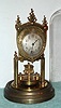 C.1905 German, Gustav Becker, for "BHA" 400-Day Clock. Earlier year clock with disc pendulum, silver and brass dial. Condition: The suspension spring is broken, but fork is still intact. The silvered dial has oxidation and the glass dome is original. Clock is overall in good condition, has typical Becker pendulum less serial number. See Horolovar 400 Day Clock, 10th Ed, plate No. 1032A. Height 13 inches