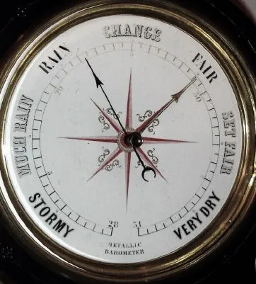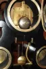 C.1880, French, Monumental 3-dial, perpetual calendar clock, the large bell strike movement signed GV, and with oversize brocot escapement on the large 7.5" dial, and with separate calendar and barometer indications, and central thermometer, with indications engraved into the glass panel. Condition: pendulum is a period French replacement, (probably had a more decorative version). Otherwise the clock appears to be in very good original condition. The movement recently serviced and ticking briskly. The porcelain dials are all in nice condition with no chips. Note calendar dial also indicating phases of the moon. This clock is heavy and fragile and courier delivery is recommended; UPS is not possible. Height 23 inches