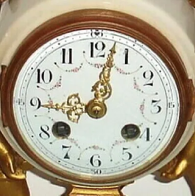 Condition: the figures have been gone over with gold paint; marble is free of chips; the movement has been cleaned and is running. Dial good. Height 10 inches