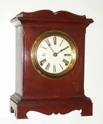 C.1920, American Mahogany cased shelf clock with good Seth Thomas 8-day time and gong strike movement.