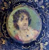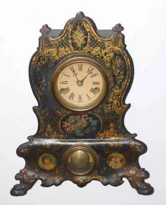 C.1855, Jerome and Co., New Haven, mini enameled iron front with gold stenciling, 30 hour t/s.