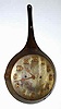 C.1905, Waterbury Clock Co., 30-hour alarm timepiece novelty mounted in a steel frying pan with raised numerals, riveted to the pan.