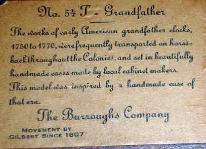 1) Burroughs No. 54T Grandfather, mahogany, with Gilbert 30 hour rear wind / set movement; 2) Well made mahogany case with flip up top for inserting an Ansonia Bee; remove to wind and set, and 3) a smaller mahogany segmented case with rear wind and set movement, missing set stem. Hts 11-14"