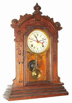 C. 1890, Waterbury Clock Co., 8-day time/strike calendar mantel clock.