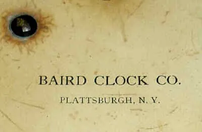 C.1892, Baird Clock Co., Plattsburgh, NY, former ad clock now with lettering removed and both doors sanded and painted brown.