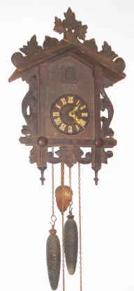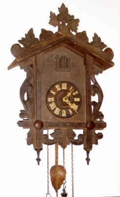 C.1920, German, 2-wt, Black Forest Cuckoo, in a carved leafy case with top rail of leaves.
