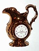 C.1890, English, Copper Loster Pitcher, with a clock face on one side, and a Japanese man in his garden on opposite side.
