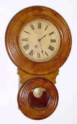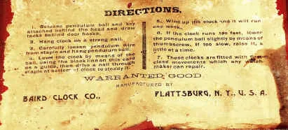 C.1892 Baird Clock Co., 8-day miniature wall clock, plain. This case style appears to have not been very popular, and only a few were manufactured (there is NO advertising).