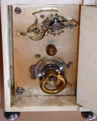 Condition: there is a small chip in the glass crystal at 11; otherwise the clock is in excellent original condition, and the movement is running. Note this is a lever escapement built into the rear plate rather than on a separate platform, and is very well done. Dial = 1.6" Ht 3.6"