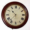 C.1900, English, Fusee Dial clock, time only with 13 inch white dial. Condition: mahogany case is in excellent original condition, including finish. The orig painted dial is in good condition, with only minor discoloration and small flake near 8; dial is signed by retailer: B. Gaunt, Barnsley. Hands are original. The movement is now driven by cable. Retains original pendulum. ht 18"