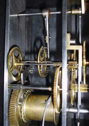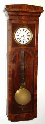 C.1890, French, Mahogany jeweler's regulator, with pinwheel movement indicating center seconds on a porcelain dial with smooth brass bezel, and with a grid-iron pendulum with large brass bob, single weight Condition: overall excellent original condition, clean and running. Ht 73"