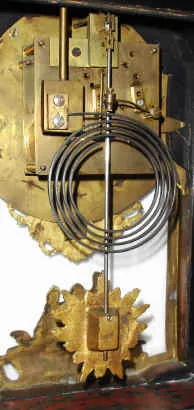 Condition: overall very good original condition, both the red shell and brass inlay nicely intact with only minor losses. The well made gong striking movement bears a serial number and the city "Paris". This has been one of the most enduring French styles, with modern versions made even today. Ht 23.5"