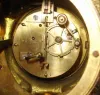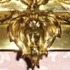 C.1890, French, Large Brass Mantel clock, profusely decorated with torches and urns and with 3 lions [sides and lower front]. 8-day, striking. Condition: porcelain dial has a creamy color and is perfect. Movement has been recently cleaned, pendulum is a modern replacement. Case has been polished and lacquered. This is a large and heavy clock, clean and running. Belongs in the Vanderbilt mansion. Ht 22.25"