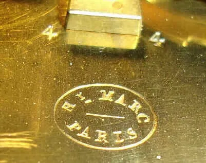 Condition: although there are some tiny repairs to the shell and brass, it is overall in very good original condition. Both the dial and the movement bear the Henry Marc signature. Porcelain dial has dark blue Roman numerals and is in nice condition. Ht 11.5"