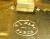 C.1890, French, Henry Marc, Paris, Mini Boulle clock in the style of a century earlier, with a platform lever escapement. Condition: although there are some tiny repairs to the shell and brass, it is overall in very good original condition. Both the dial and the movement bear the Henry Marc signature. Porcelain dial has dark blue Roman numerals and is in nice condition. Ht 11.5"
