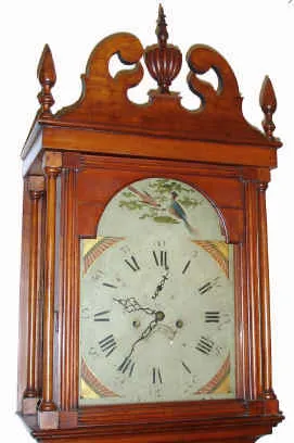 C.1805, Connecticut [probably Windham, CT], cherry cased tall clock, 8-day, 2-wt, painted arched dial, with chestnut backboard.