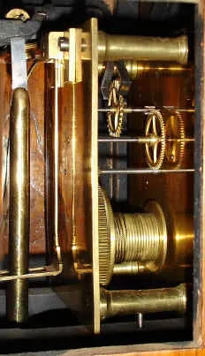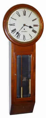 C.1890, English, 1-Wt Regulator, or tavern timepiece in a well made case of English Walnut, the robust 8-day movement with large pillars and maintaining power, and with Graham's dead beat escapement, wt descends right side of case.
