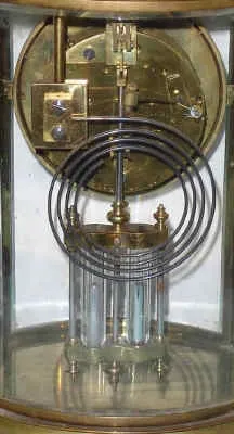 C.1895, French, S. Marti for Bailey Banks and Biddle Co., Oval 4-glass "crystal regulator", 8-day with 2 vial compensating pendulum intact.