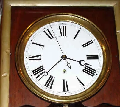 C.1880, American Jeweler's Regulator, in a walnut case with brass trim. The consignor bought this out of a French Quarter residence many years ago, and the case is attributed to Stanislaus Fournier of New Orleans. Note brass trim all around the door, and