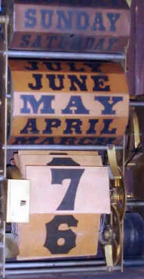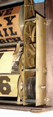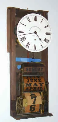 C.1897, Prentiss Calendar and Time Co., New York, "EMPIRE", calendar timepiece, 30 day duration, with separately wound "thrasher" mechanism with two rollers carrying month and day and the dates on individual cards.
