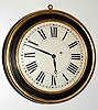 C.1850, Brewster and Ingrahams, Dial Clock, 8-day time and strike with Kirk's patent iron back-plate movement, spring. Condition: this timepiece has been restored, the bezel painted black, and 2 rings gold leafed ad accent. The wooden dial has been repainted. Seems to run fine. The dial plate = 14" , case diameter is 19.5"