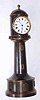 C.1890, French, LIGHTHOUSE form, brass cased timepiece, with a platform cylinder movement and porcelain dial, fixed position. Condition: the patinated brass case is in very good original condition. Movement ticks briskly for a "cylinder" 'scape. Porcelain dial is xlnt and hands are original. Small scratch in front crystal. Ht 18.5"