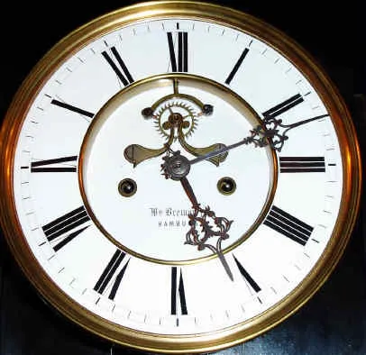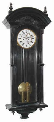 C.1875, German, 2-Wt, Vienna Regulator, in an ebonized case, the unusual movement with exposed escapement on the dial, and with dead beat, dial signed, Wm Bremer, Jr., Hamburg.