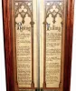 C.1880, English, ADMIRAL FITZROY'S BAROMETER, in an oak case with carved top. Printed paper instruction give full details on use of the instrument, which includes a thermometer and an indicator for height of the atmosphere in miles. Condition: top carving was broken and glued, but all there; otherwise the barometer is in excellent original condition, working well. Note there is NO shipping on this item, contains Mercury, must pick up or seek courier delivery. Fitzroy's foto credit, Wikipedia. Ht 42"