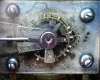 Condition: screws to carry handle are loose and should be attended. There are a couple dozen small dings in the top of the case where a child beat on the clock with a toy, and top rear corner is dimpled from a fall. Hour hand is replaced. The original lever platform is intact, the dial is perfect, and the clock is running and striking. Ht 7.5"