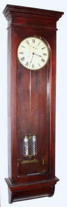 C.1900, Fred Frick Clock Co., Waynesboro, PA, full length mahogany regulator with 2-jar Mercury pendulum (Seth Thomas components).