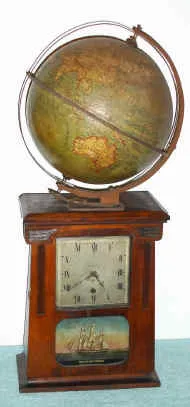 C.1910, German, for the American Market, 8-day world time or globe clock with 9" globe (pendulum movement).