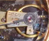 Condition: recently cleaned and running, the minute hand has been changed and does not match hour hand. Left front foot portion of base is bent. Beveled glass is all good and dial is perfect. Ht 5.7"