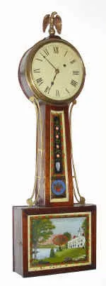 C.1850, American banjo or patent timepiece 8-day weight driven.