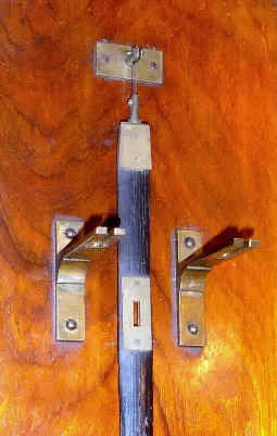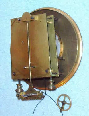 Condition: the top trim is made new and is stained too dark, some dings in pendulum bottom center final too small. Otherwise it is in good original condition, with good original dial and hands. Movement is original to case. Ht 34"