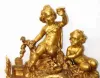 C.1875, French, Ormolu Figural clock, PLAYING CHILDREN, showing a young boy and girl in the woods with a bird nest, holding one chick aloft and with an open bird cage to one side, ready to receive the new pet.