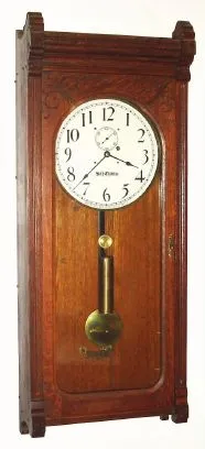 A heavy oak case from a self-wind or watchman's clock, now with a Seth Thomas No. 2 movement, C.1900
