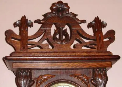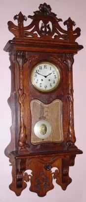 German, Oak Cased, Art Nouveau wall clock with nice rack strike, 8-day movement marked B and W, serial 60104, C.1920