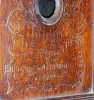 this clock has been in storage and has not run for years, but is overall sound. There is one small bit of carving missing from the door; otherwise case is complete and with old or original finish (needs cleaning/waxing). Again, lower case is empty. Additional information on Bundy can be found on the internet. Note inside instructions are good except for some loss at top edge. Height 56 inches