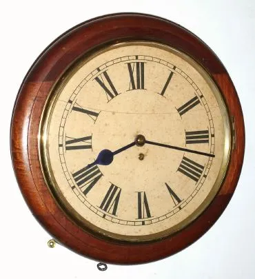 English, W. Elliott, Dial or pub clock, single fusee, time only in a mahogany case, serial No. 17868. C.1900.