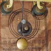 Chauncey Boardman, 1-day fusee, Sharp Gothic or steeple clock, C.1850, the outer case has lost all its veneer and is down to the pine with a shellac finish; veneer on door is ok. Has a good Boardman fusee movement and a nice label. The Fenn tablet is original, but has lost some detail and most of its background. Height 19 inches