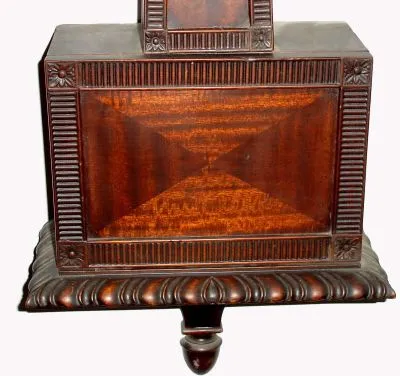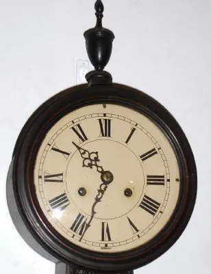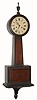 German, Mahogany cased banjo clock, 8-day time and strike with 8-day going barrel movement with rack striking on a gong. C.1920.