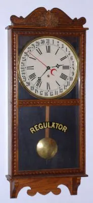 American, Store Regulator timepiece, with calendar, oak case, 8-day spring, C.1910.